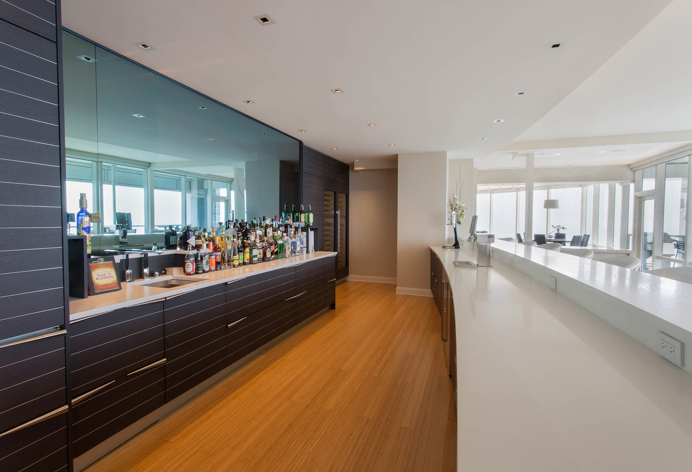 This project combined two adjacent units into one spectacular home designed for entertaining and luxury living. The expansive sweeping curved form of the new Kitchen and Bar ties all of the Living spaces together and becomes the backdrop for the incredible city and lake views offered throughout the entire home. Modern forms and finishes define and highlight the function of every room.