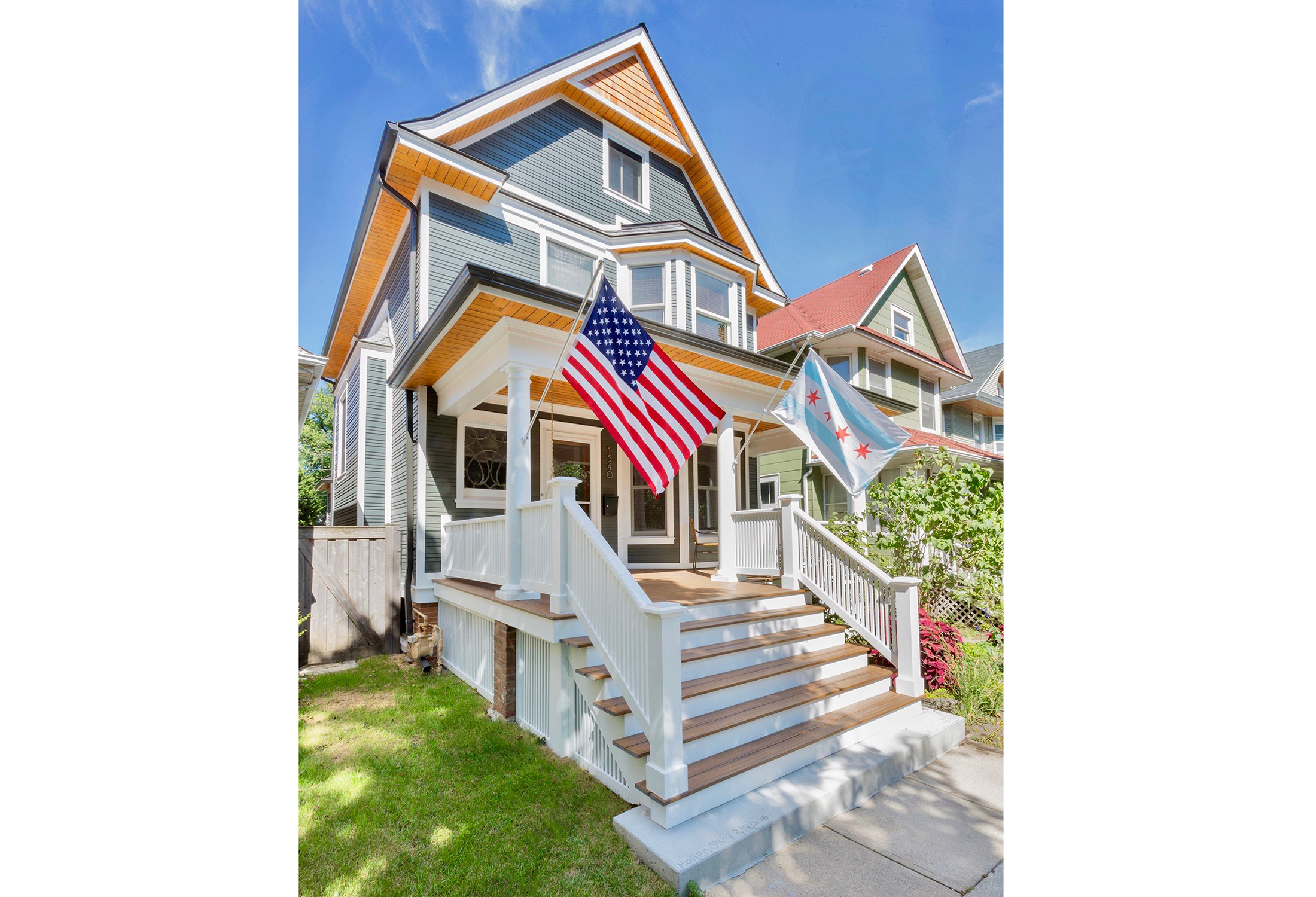An undated grainy old photograph of the home revealed the original wood clapboard siding of this American Foursquare on the north side of Chicago. A prior renovation stuccoed directly over the existing siding, resulting in the house looking slightly bloated, or as the current owner’s son said, “like hummus had been spread over the house.”