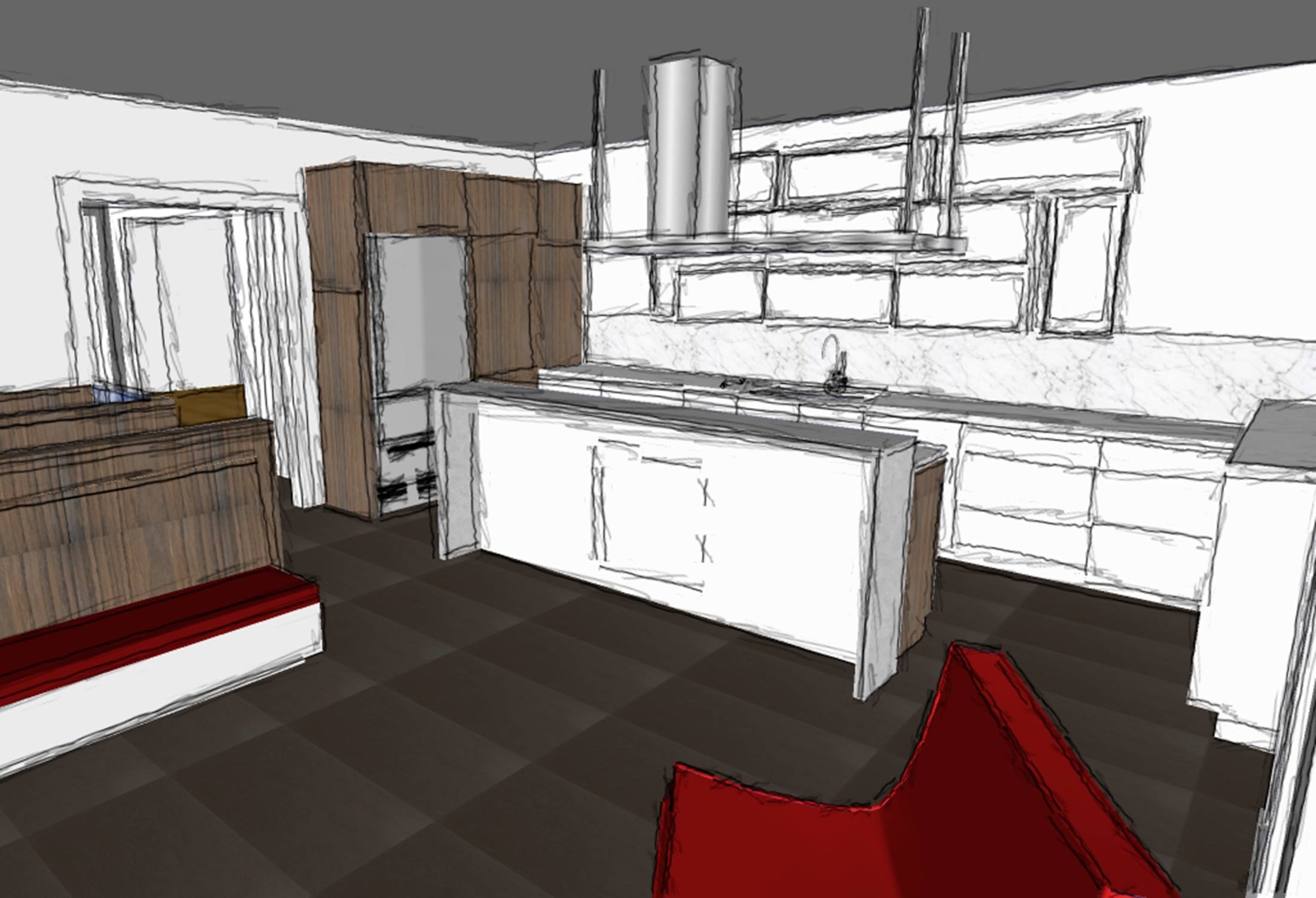 A new addition accommodates a new Family Room, Kitchen and Mud Room on the First Floor and Primary Suite on the Second Floor. The new architecture reflected the Owner's love of Early Modern Design and became the background for thier extensive collection of art and furniture.