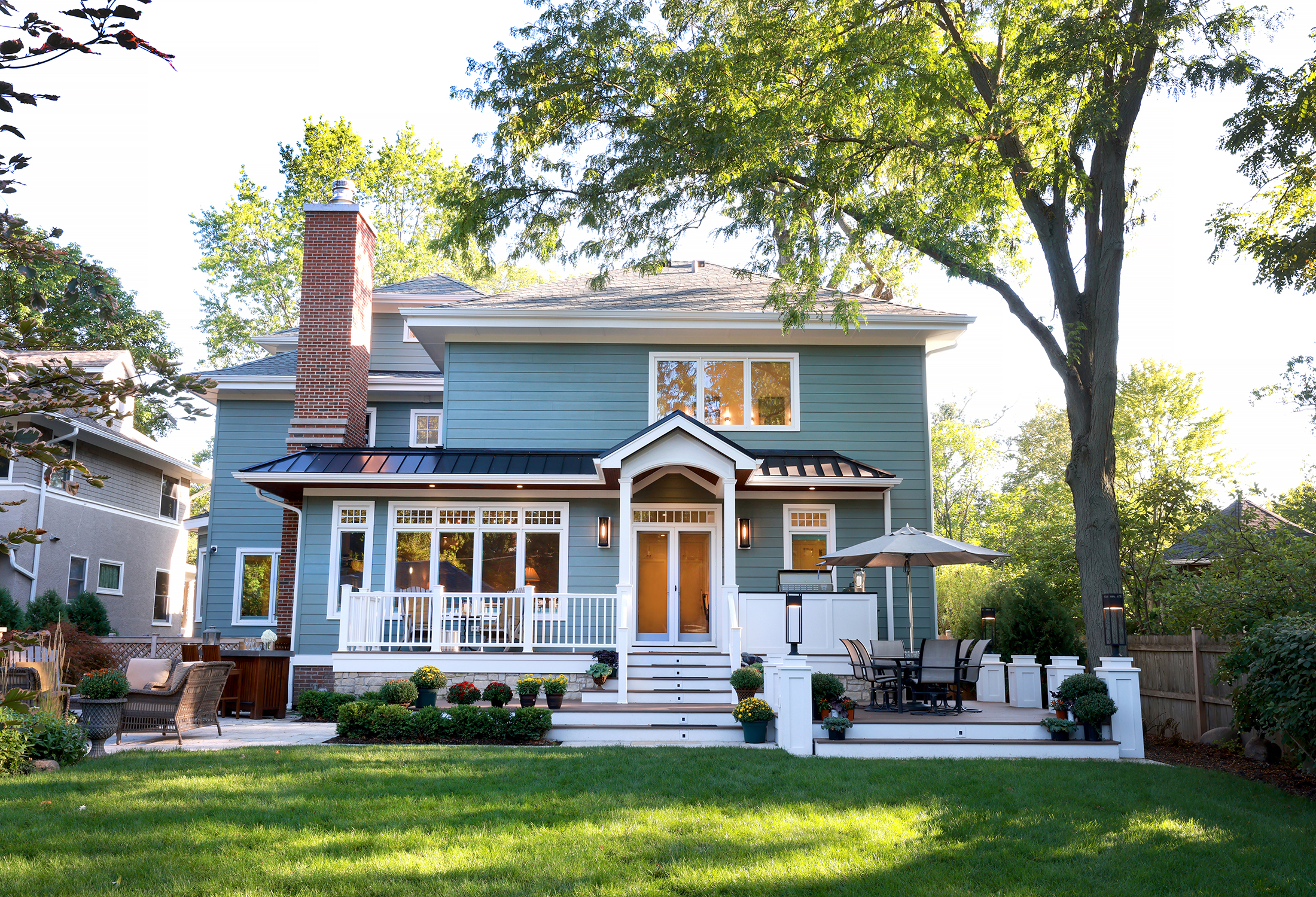 Clarified circulation and redefined living spaces ultimately required significant interior and exterior rework of a prior addition to this grand American Four-Square. The new working Kitchen is directly connected to the Family Room and was designed to host frequent large gatherings of family and close friends. The Kitchen work zones were carefully planned to allow entertaining and preparation to occur in the same space at the same time. The Bar location allows the tender to stay out of the way of the chef while never losing an eye of the Tarheels game on the TV over the fireplace. A new Primary Suite with Primary Bath and Walk In Closets provide respite and retreat for the Owners to find peace and quiet.